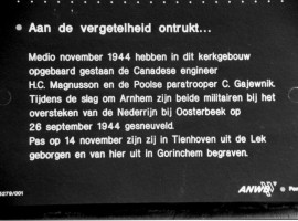 Herdenking van de op 14 november 1944 uit de Lek geborgen Canadese engineer H.C. Magnussen en de Poolse paratrooper C. Gajewnik In het Nieuwsblad 2004-3 is een artikel gepubliceerd over de Canadese… Lees meer