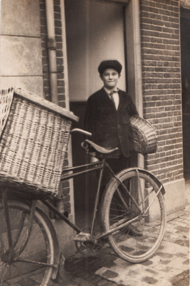 Hier zien we bakkersknecht Dirk Vroon op circa veertienjarige leeftijd met zijn bakkersfiets. Hij was knecht bij bakker Van Heusden in Ameide. Dirk is op 8 maart 1917 in Ameide geboren als zoon van Krijn Vroon en Geertje Vuurens. Deze foto zal dus in circa 1931 zijn gemaakt.