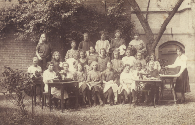 Op deze foto een groep meisjes uit Ameide die een naaicursus volgen. Graag willen we meer weten over deze foto, wanneer is deze gemaakt en wie zijn afgebeeld op deze foto.