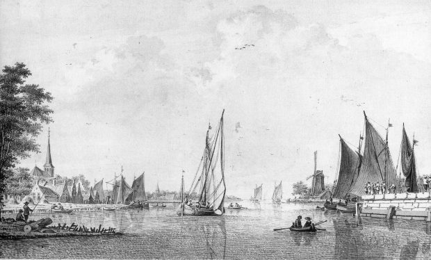 Dirk Verrijk (1734-1786): Riviergezicht – Aan de Lek, gewassen tekening on O.I.-inkt, 205×338 mm, niet gesigneerd, particulier bezit.