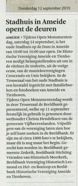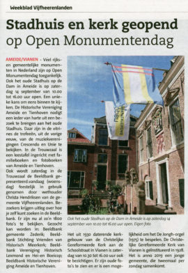 Open Monumentendag 2019 Bericht in Weekblad Vijfheerenlanden van 11 september 2019 Veel rijks- en gemeentelijke monumenten in Nederland zijn op Open Monumentendag toegankelijk. Ook het oude Stadhuis op de Dam in Ameide… Lees meer