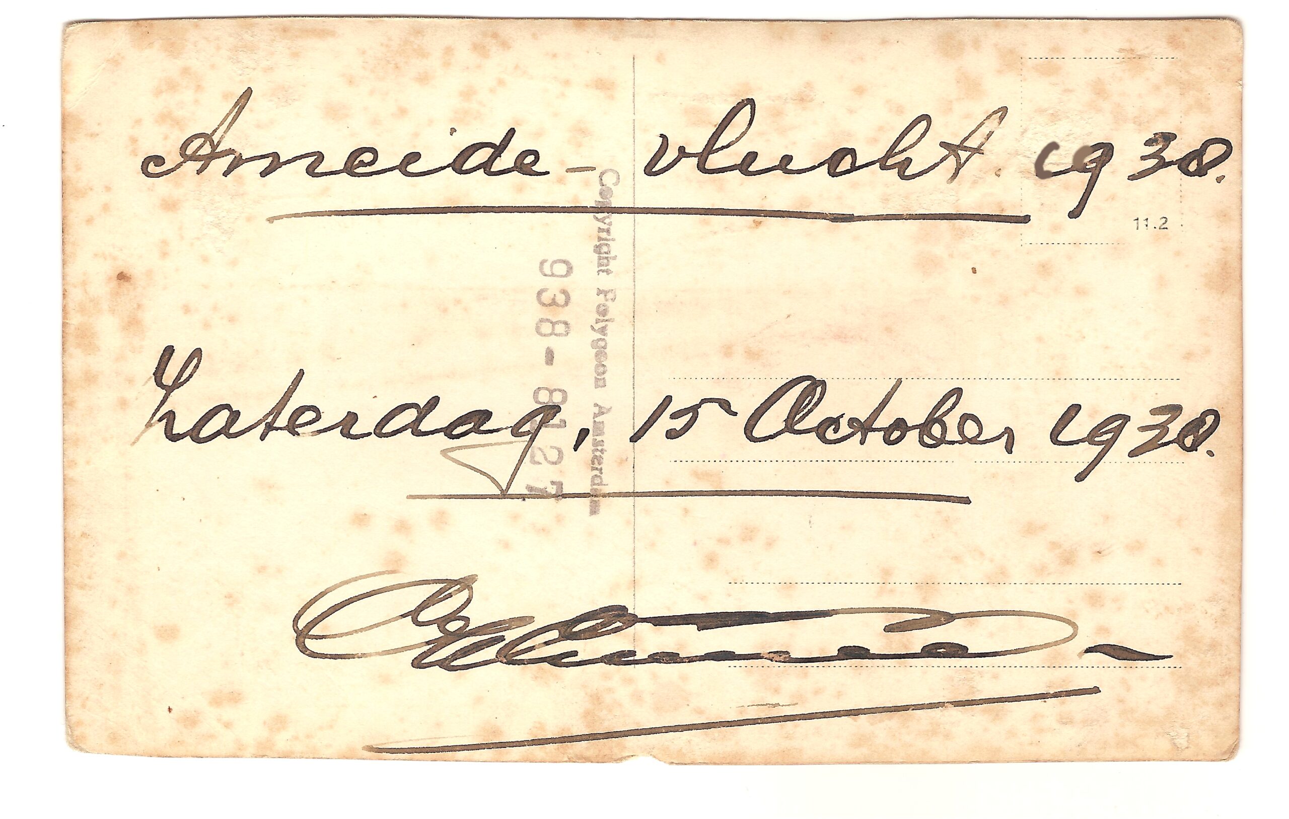 Uit de tekst van de achterzijde van de foto blijkt dat de vlucht werd gemaakt op 15 october 1938. De handtekening is die van burgemeester Luijendijk