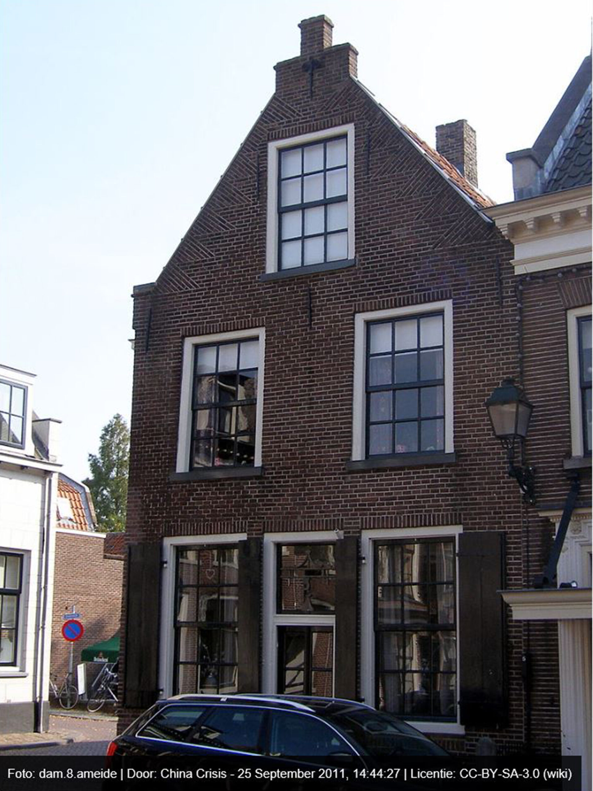 Beschrijving van Rijksmonument nummer: 7565, Dam 8 te Ameide. Huis van parterre, verdieping en zolderverdieping, gedekt door een zadeldak. HOEKPAND Benedendamsestraat. Puntgevel met trapvormige bekroning en vlechtingen. Goede onderpui, deur met gesneden [...]