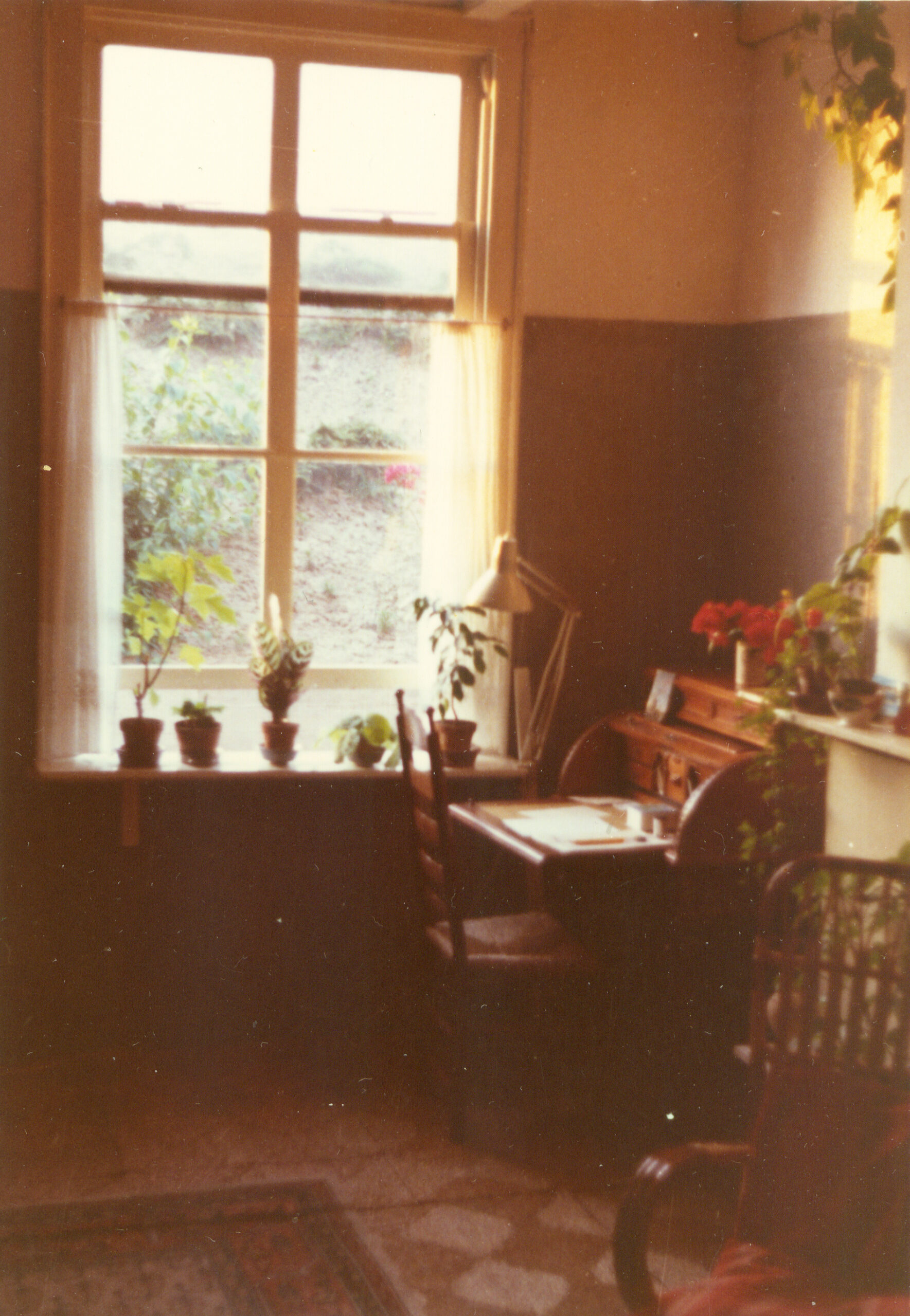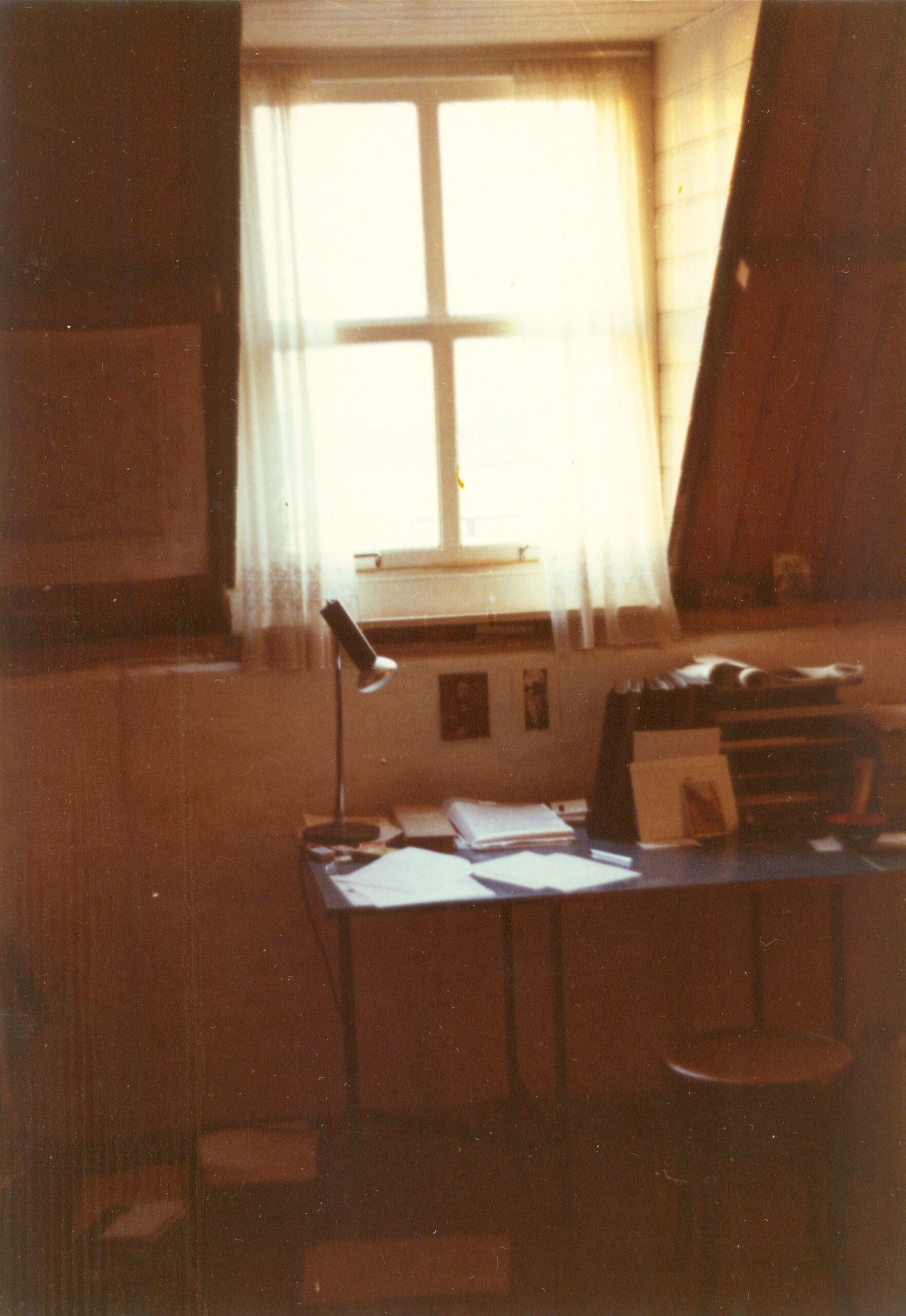 De woon- en werkkamer van Carla Jonker in 1970 en 1971 aan de Peperstraat in Ameide.