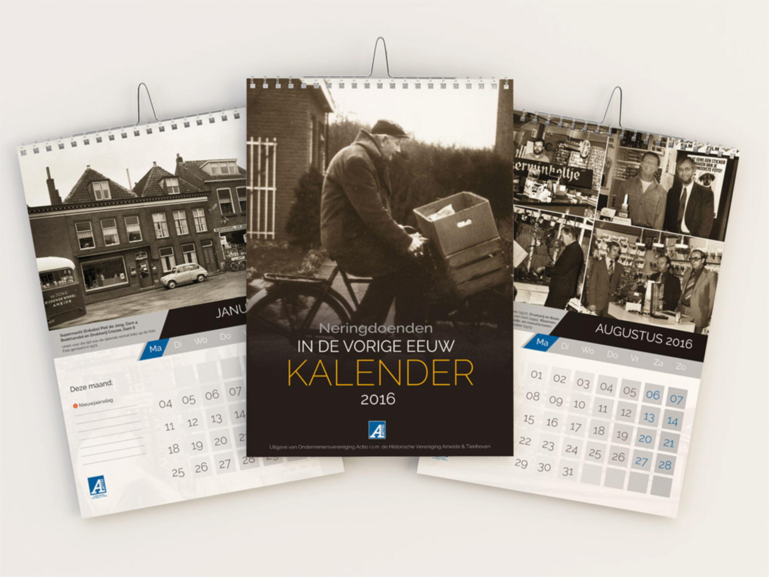 Door Actio wordt een kalender 2016 uitgegeven met als onderwerp: Neringdoenden in de vorige eeuw. Actio is de ondernemersvereniging van Ameide en Tienhoven. Tijdens de expositie over de vroegere winkelstand in de Sionkerk tijdens de paardenmarktweek is deze kalender te koop voor een bedrag van € 5,–. Deze kalender bevat prachtige afbeeldingen van de vroegere winkels in Ameide en Tienhoven.