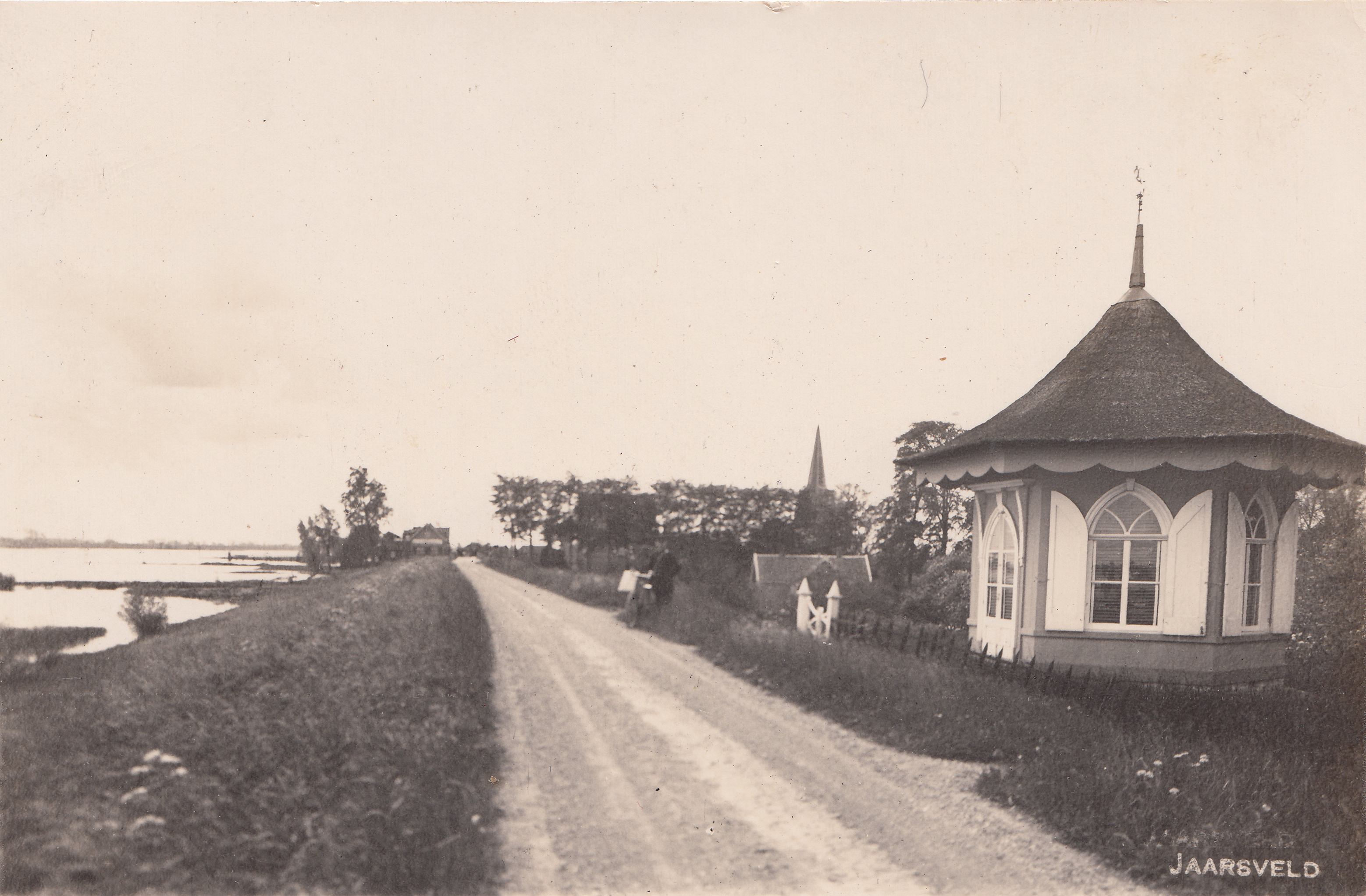 Een ansichtkaart van de koepel te Jaarsveld. Deze kaart is in 1931 afgestempeld. Tante Mar uit Jaarsveld heeft deze kaart gestuurd naar de Jonge Juffrouw Marrie Stigter p/a den Heer H. Baas te Sluis bij Ameide.