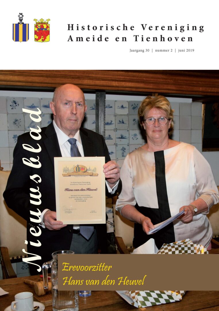 De Vereniging is tijdens de ALV een voorzitter armer, maar een erevoorzitter rijker geworden. Hans van den Heuvel is gelukkig weer hersteld en opnieuw actief. Hij heeft een interessante terugblik geschreven op zijn periode als voorzitter van de HVAT en zal ook in de toekomst opnieuw bijdragen leveren aan het Nieuwsblad. In dit nummer schrijft Hans naar aanleiding van de verschijning van enkele boeken al een bijdrage over de heerlijkheden Ameide en Tienhoven.