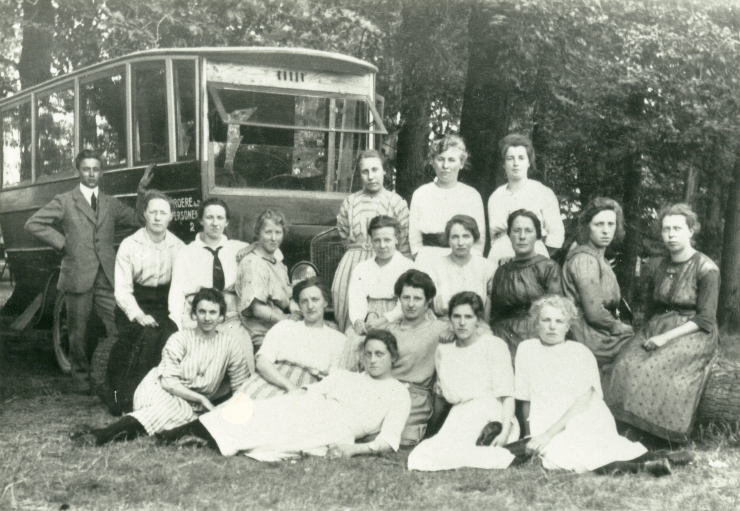 Een foto van een groep dames waarvan we op dit moment nog niet weten welke groep dit is. Op de achtergrond links zie je de bus waarmee dit gezelschap waarschijnlijk op reis [...]
