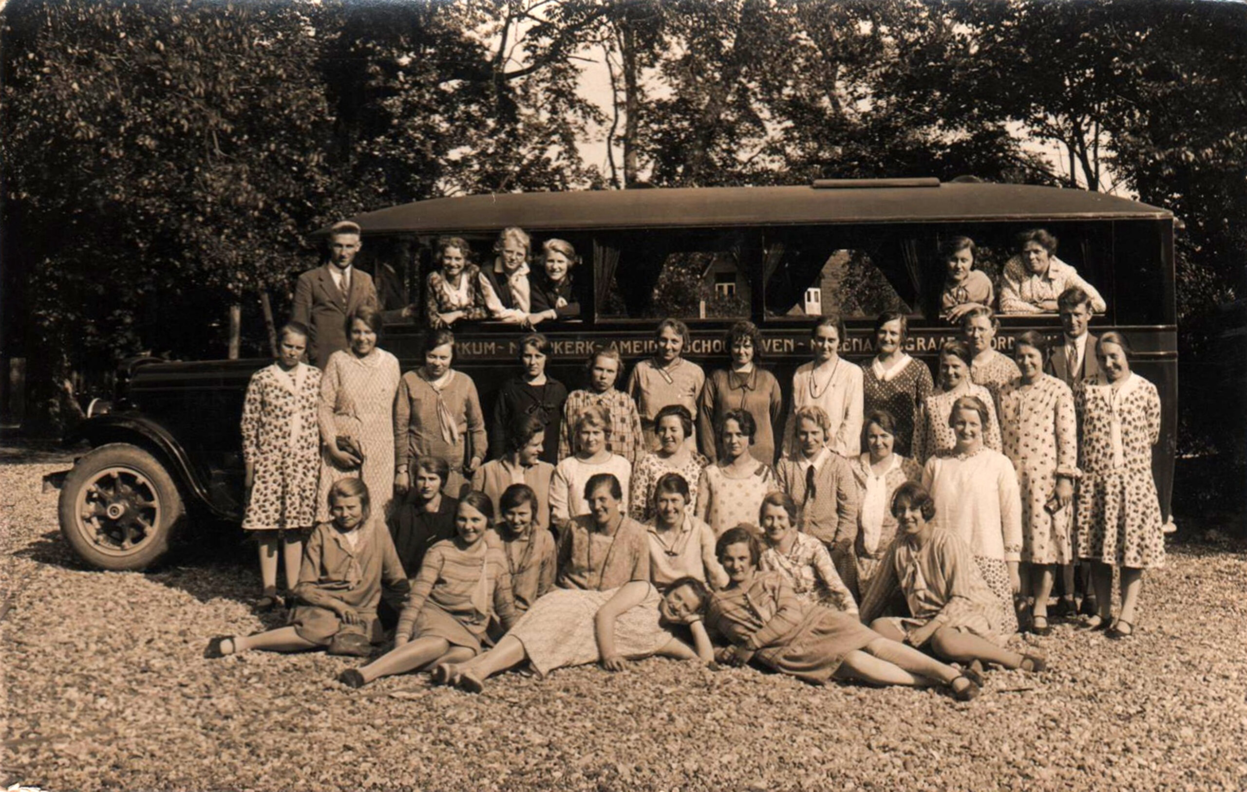 Op de zijkant van deze bus staat te lezen: GORKUM – MEERKERK – AMEIDE – SCHOONHOVEN – ??? – ??? – DORDRECHT. Staande middelste rij van links zien we Annigje van der [...]