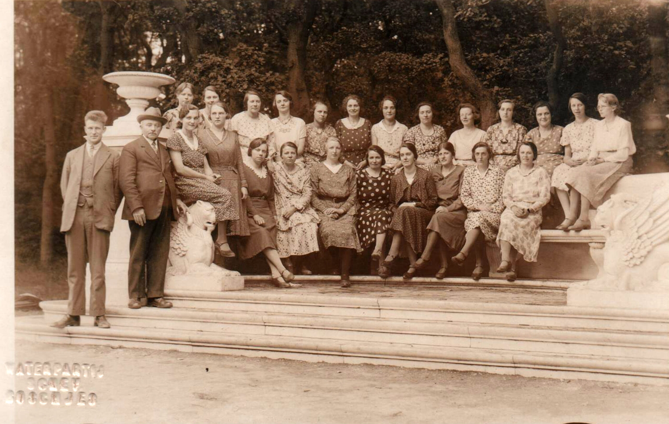 Op deze foto is links onderaan gedrukt: Waterpartij Schev(eningsche) Boschjes. Deze foto zal dus in Scheveningen zijn gemaakt. Eerste rij zittende links is Annigje van der Grein. Wie kan ons meer helpen [...]