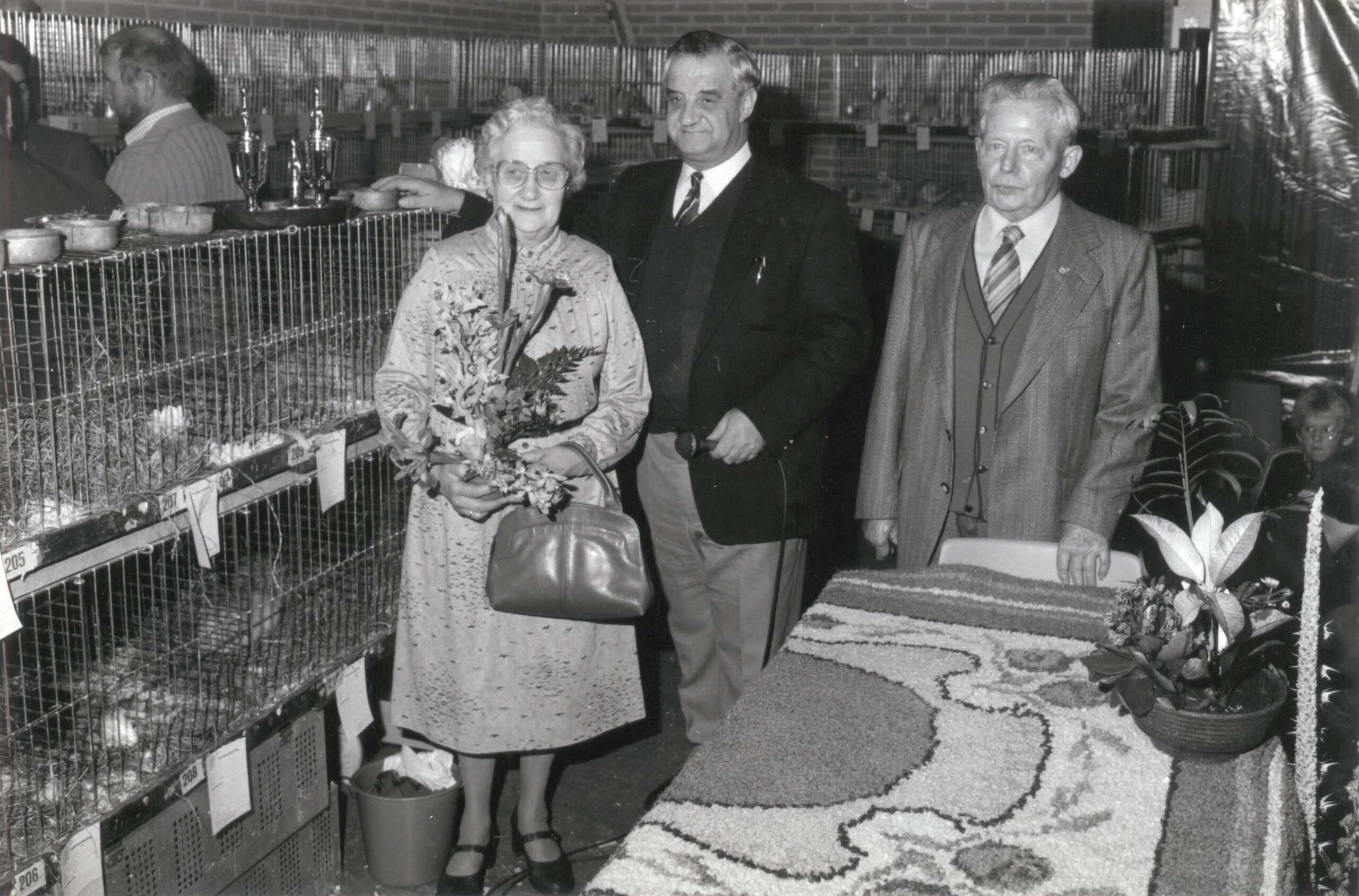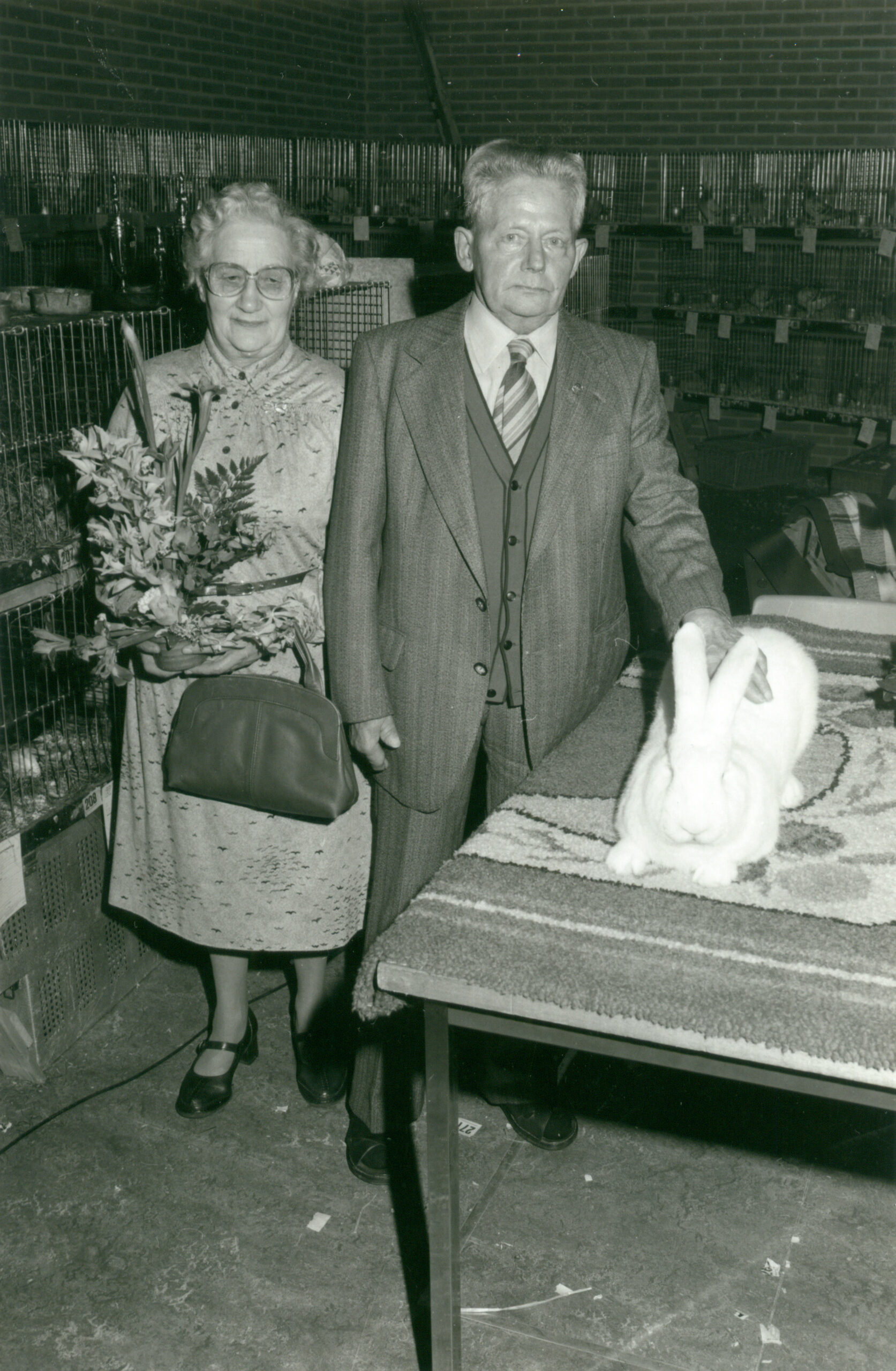 Reinier de Lange met zijn echtgenote Jannigje Terlouw. Tussen hen staat Piet Peterse, bestuurslid van de konijnenfokvereniging. Omdat de voorzitter een microfoon in handen heeft zal Reinier de Lange waarschijnlijk zijn toegesproken [...]