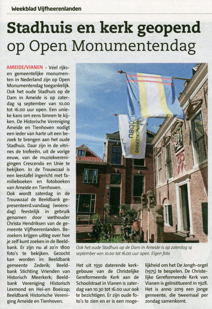 Bericht in Weekblad Vijfheerenlanden van 11 september 2019