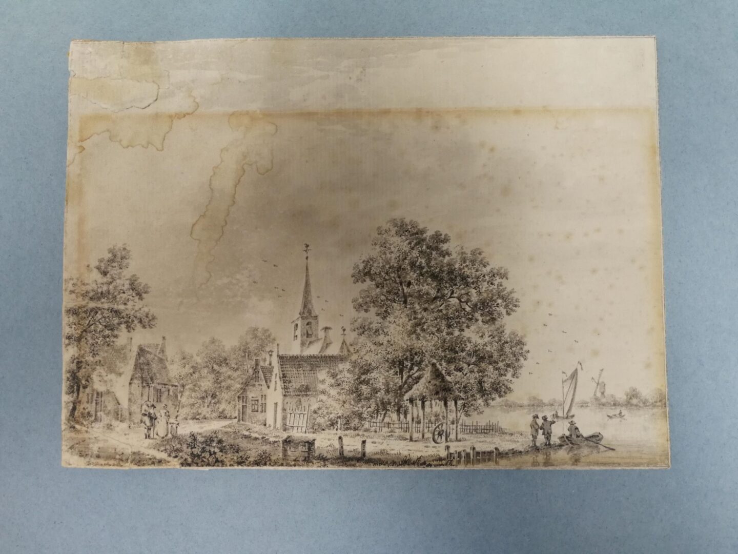 Een tekening van Pieter Jan van Liender uit 1764, voorstellende Tienhoven aan de Lek (volgens eigenhandig opschrift). De maten ervan zijn 140 x 195 mm.