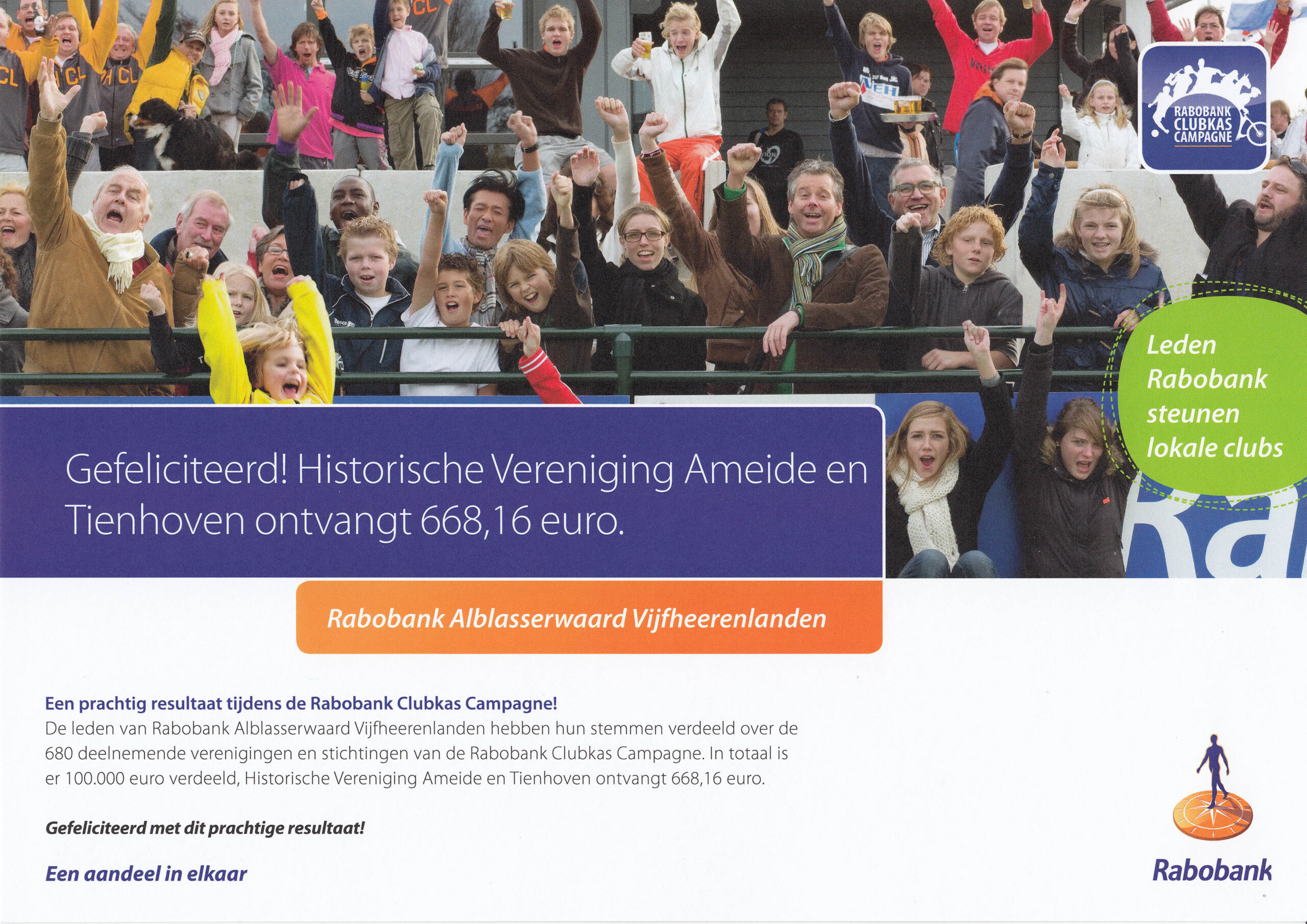 Op de Historische Vereniging Ameide en Tienhoven zijn maar liefst 114 stemmen uitgebracht tijdens de stemperiode van de Rabobank Clubkas Campagne. Dit betekent dat onze vereniging € 668,16 ontvangt. Het stemmenaantal en [...]