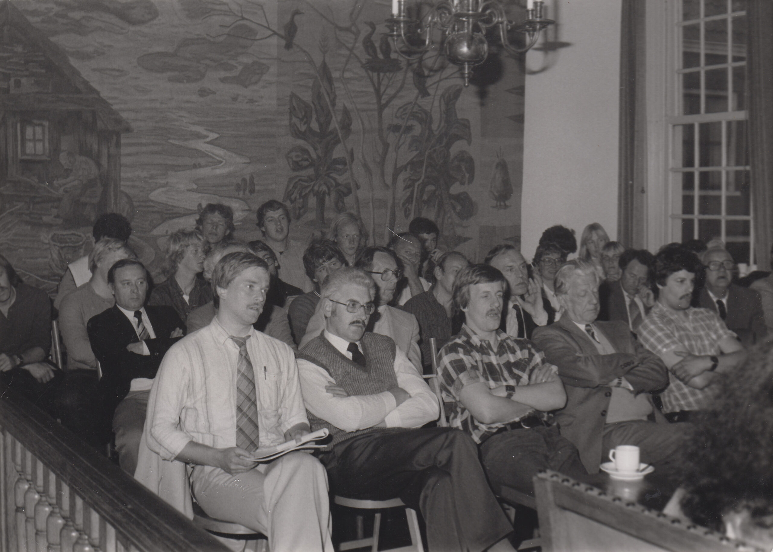 De publieke tribune in het Stadhuis van Ameide tijdens een raadvergadering (circa 1981) is druk bezet. Blijkbaar kon de gemeentepolitiek zich in die tijd verheugen op een grote belangstelling. Op de tribune [...]